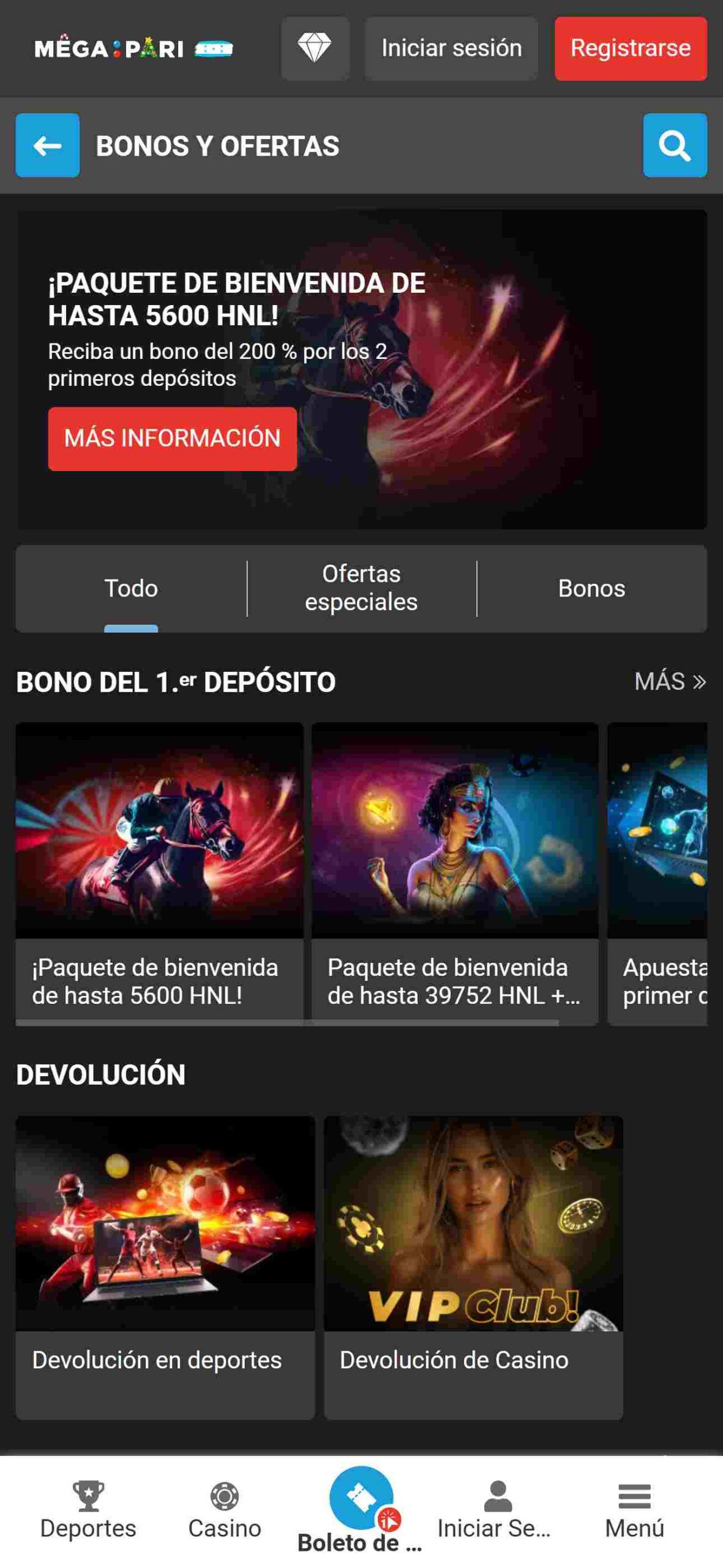 | 1 | Megapari | 4.6/5 | Paquete de bienvenida del 200% hasta 5600 HNL | Leer reseña |